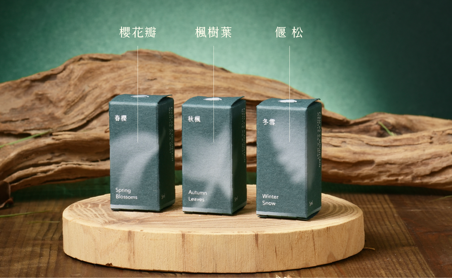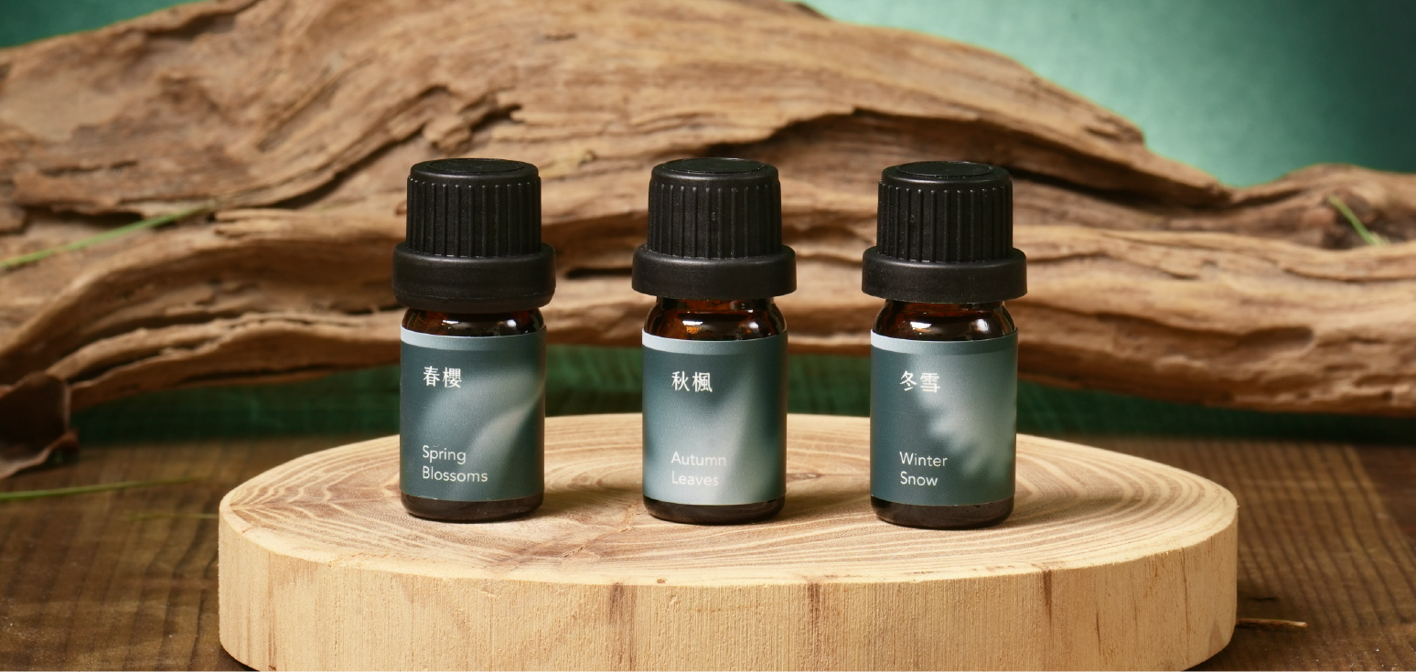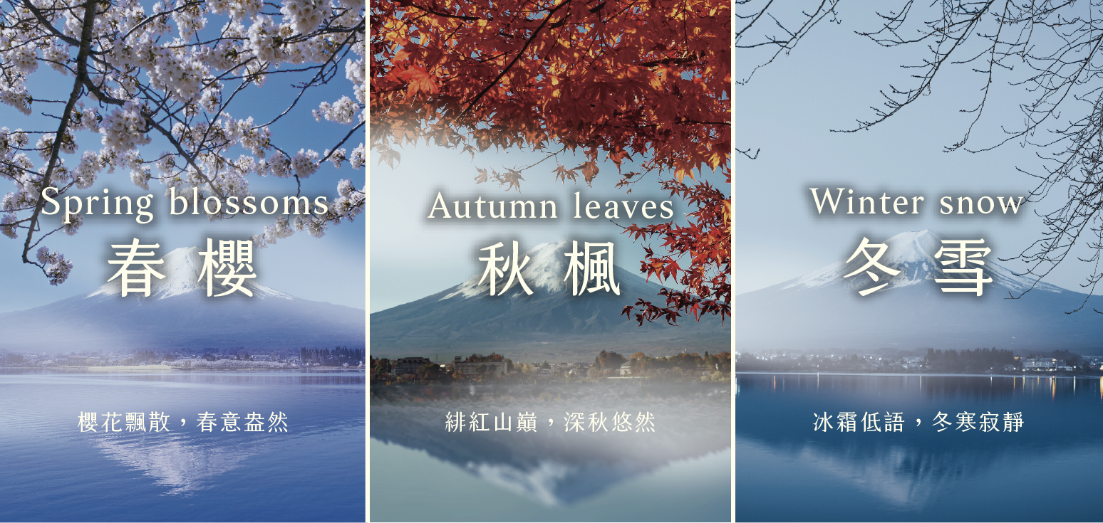 以富士山的季節變化為靈感,設計出春櫻、秋楓、冬雪 3 款山林系複方香氛,還原每個季節不同的山間景色。