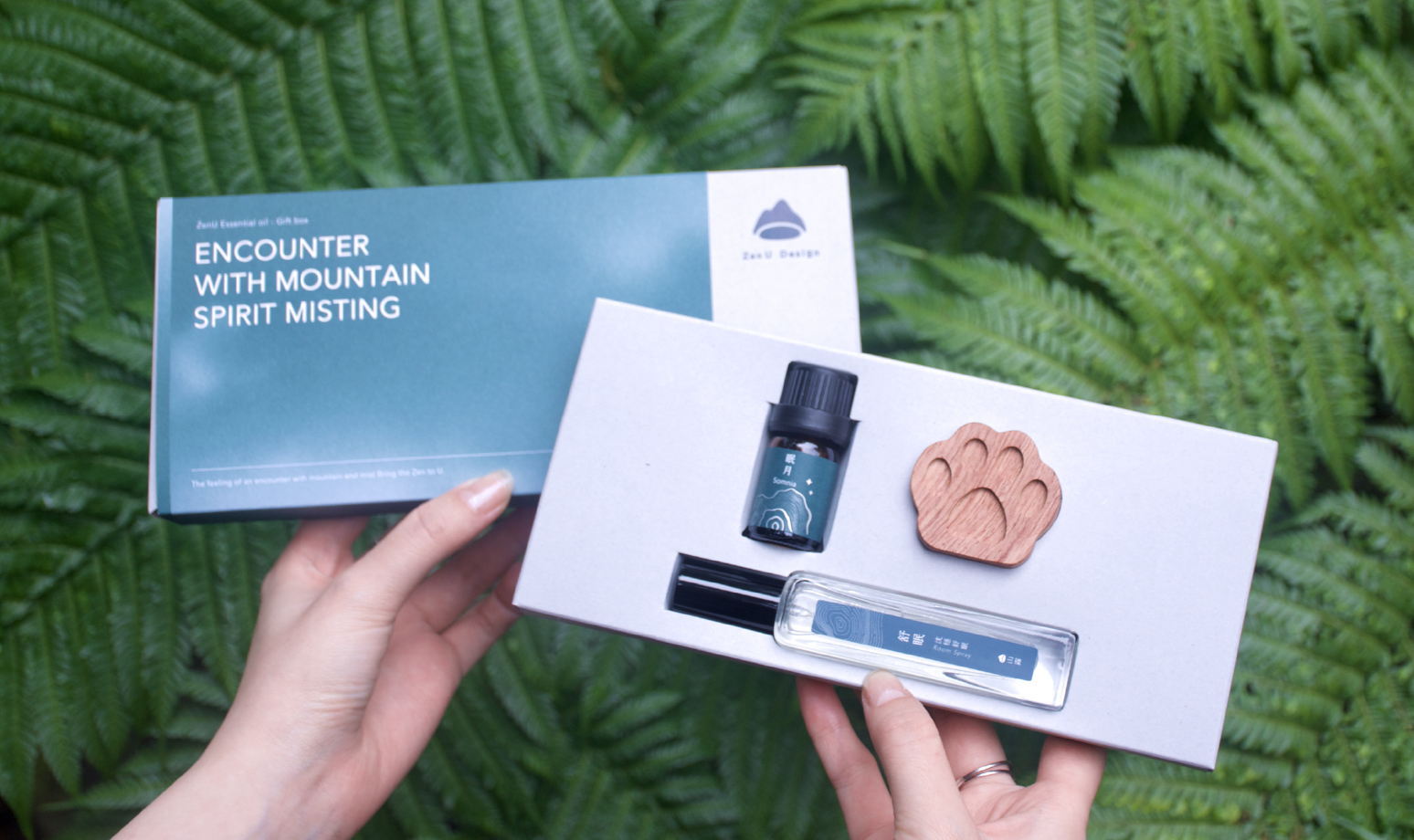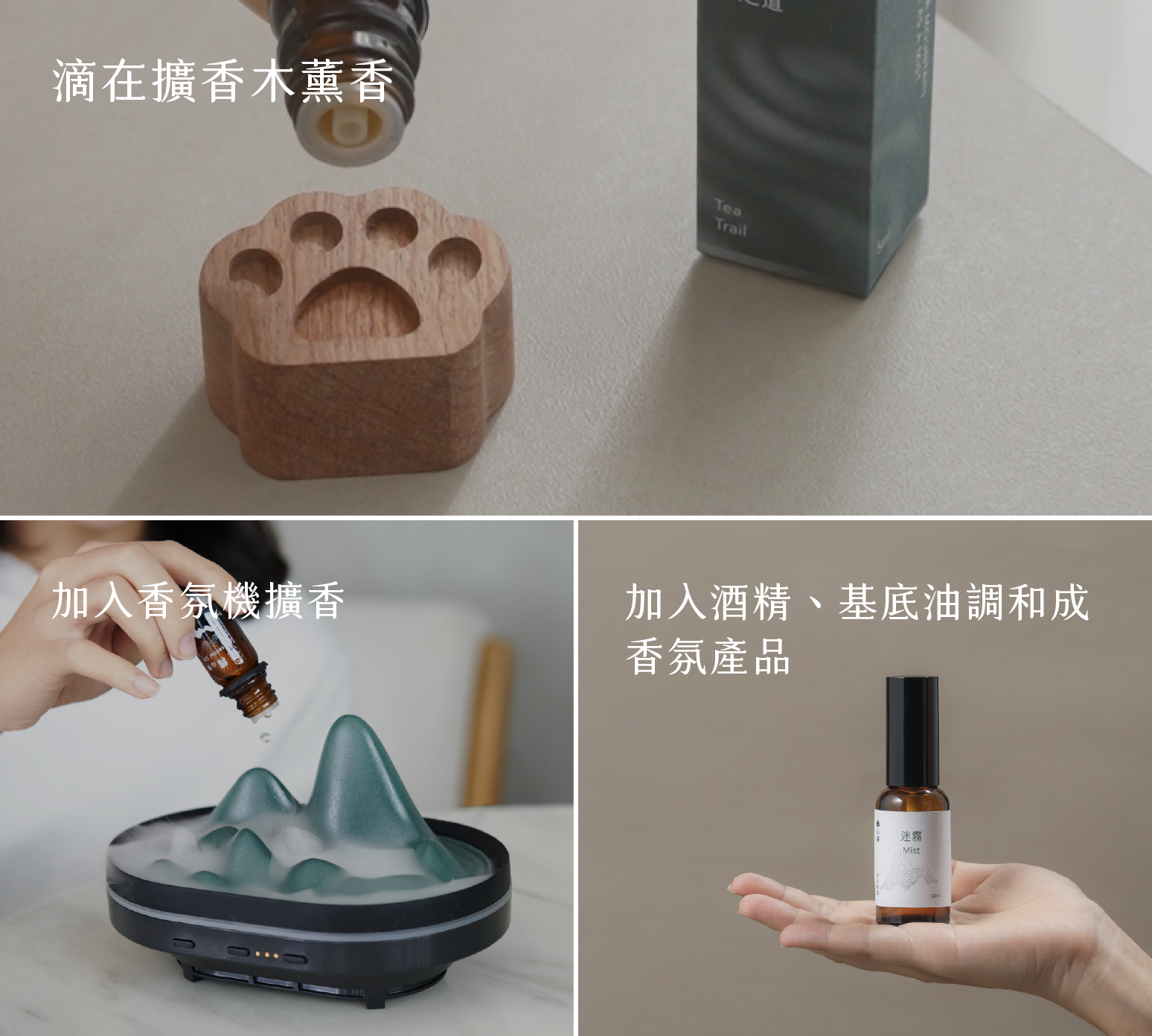 組合內含:山脈海拔系列 · 天然複方精油 5ml 1 瓶、系列香氛噴霧 15ml 1瓶、貓掌擴香木 1 顆