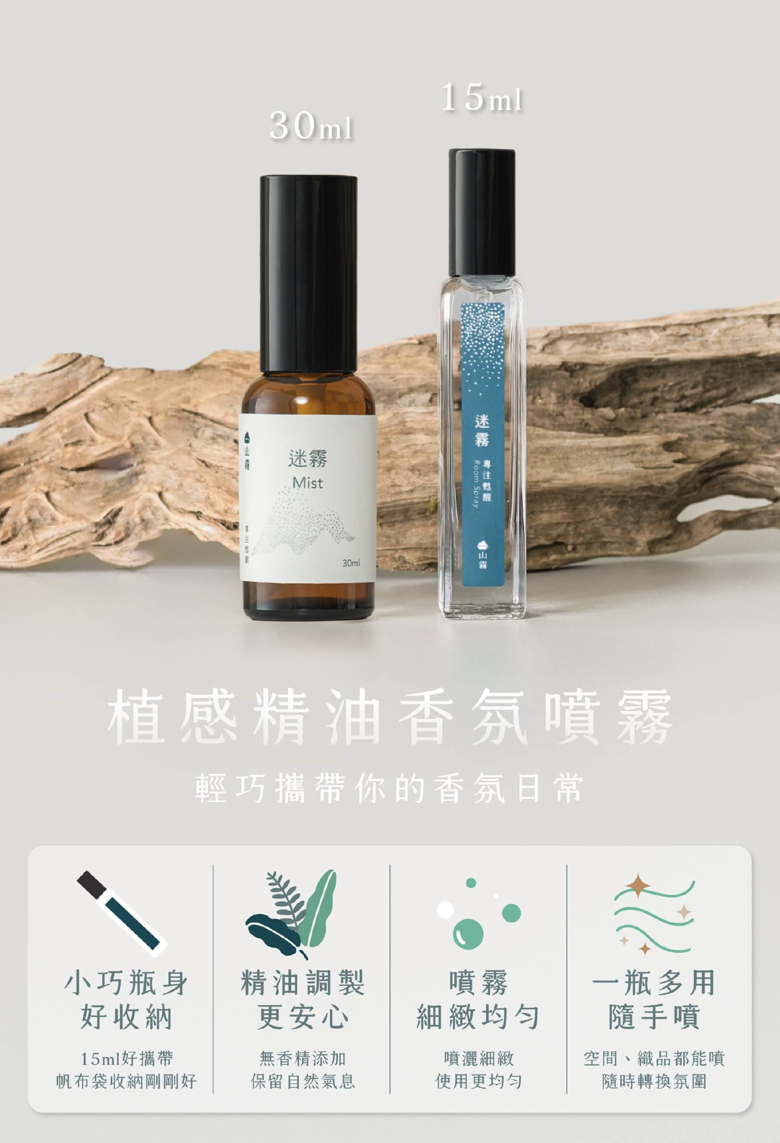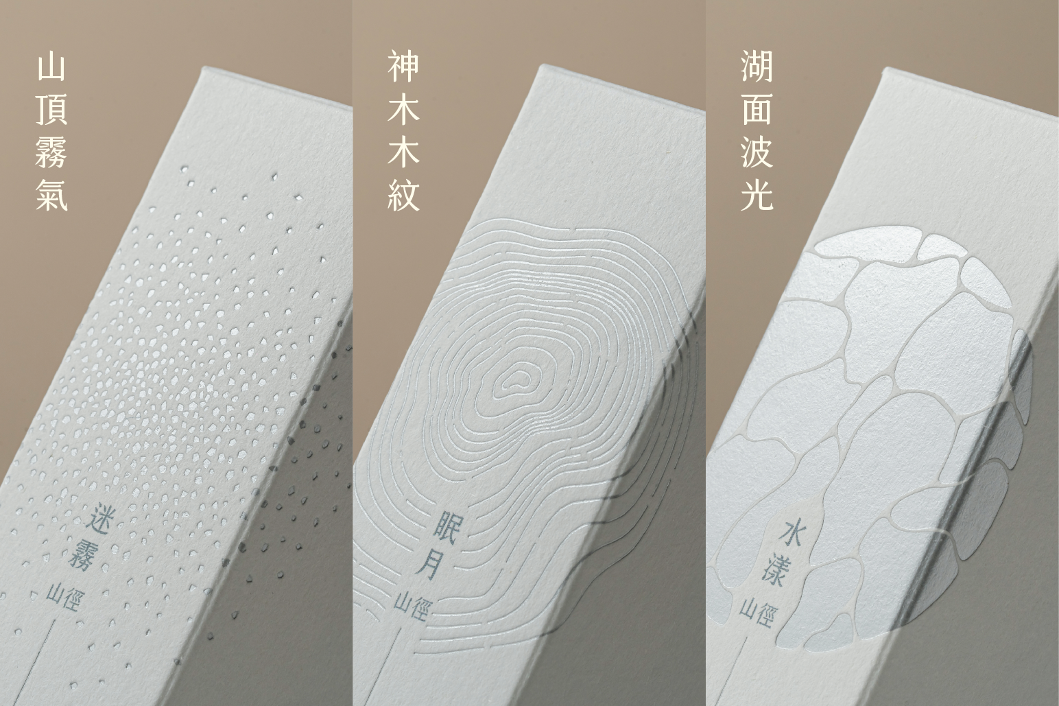 以阿里山的海拔變化為靈感,設計出高海拔迷霧(專注)、中海拔眠月(舒眠&寵物友善)、低海拔水漾(放鬆),三款山林系天然複方香氣。