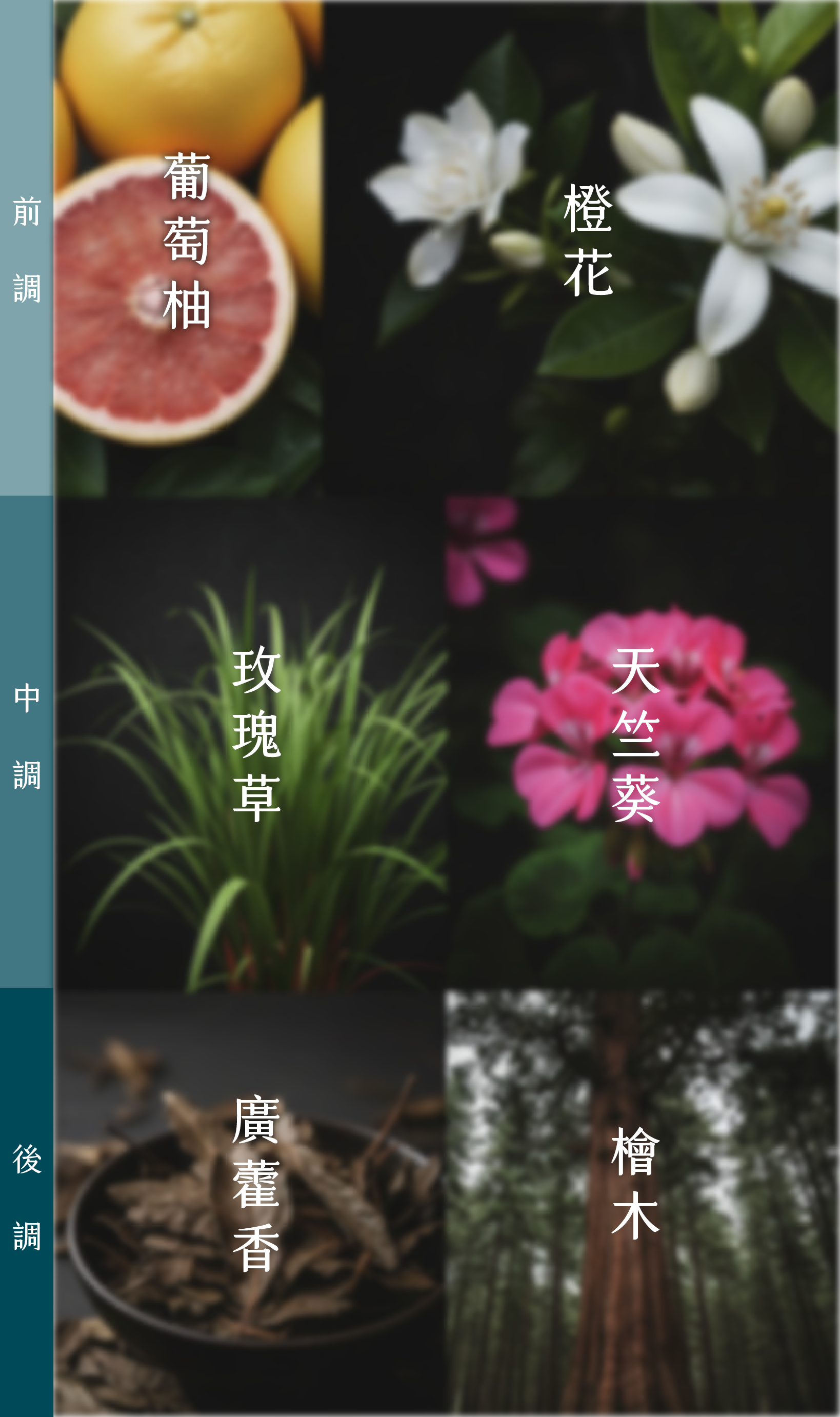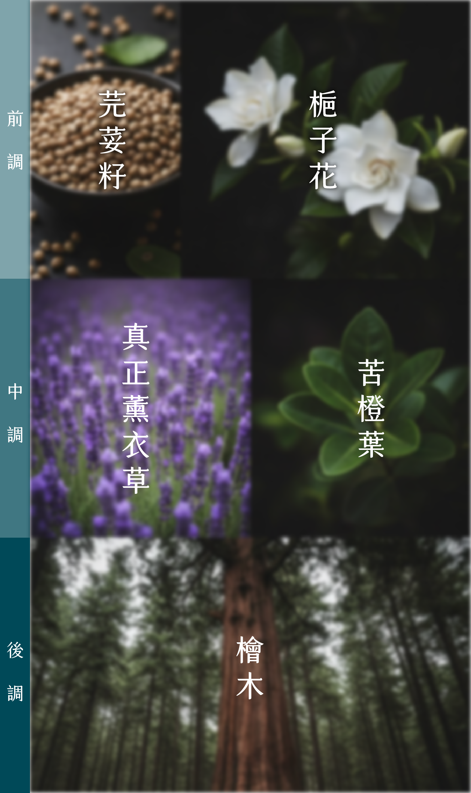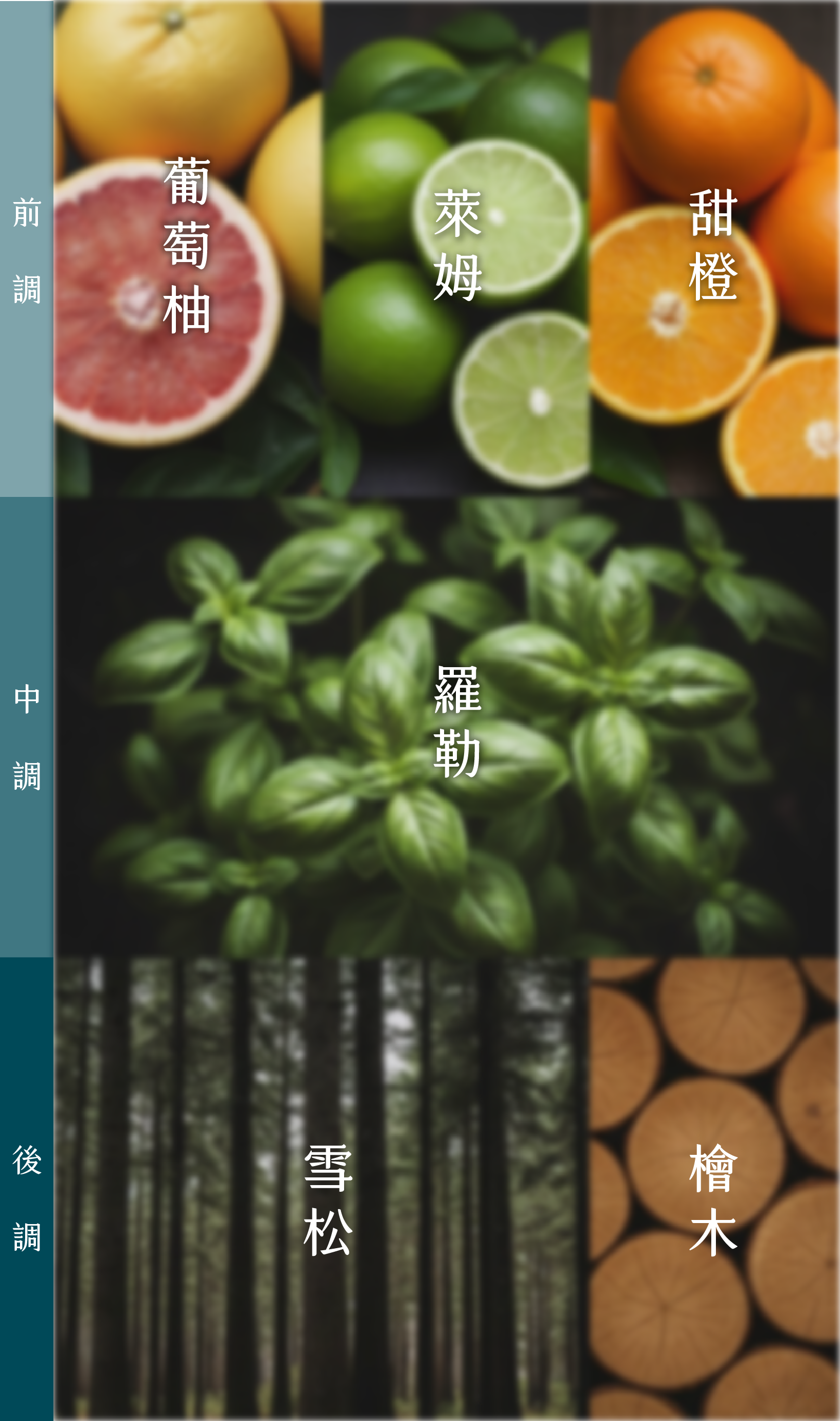以阿里山的森林時序為靈感,設計出早晨雲之道(放鬆)、午後茶之道(專注)、黃昏霞之道(安定心神&寵物友善),三款山林系天然複方精油。