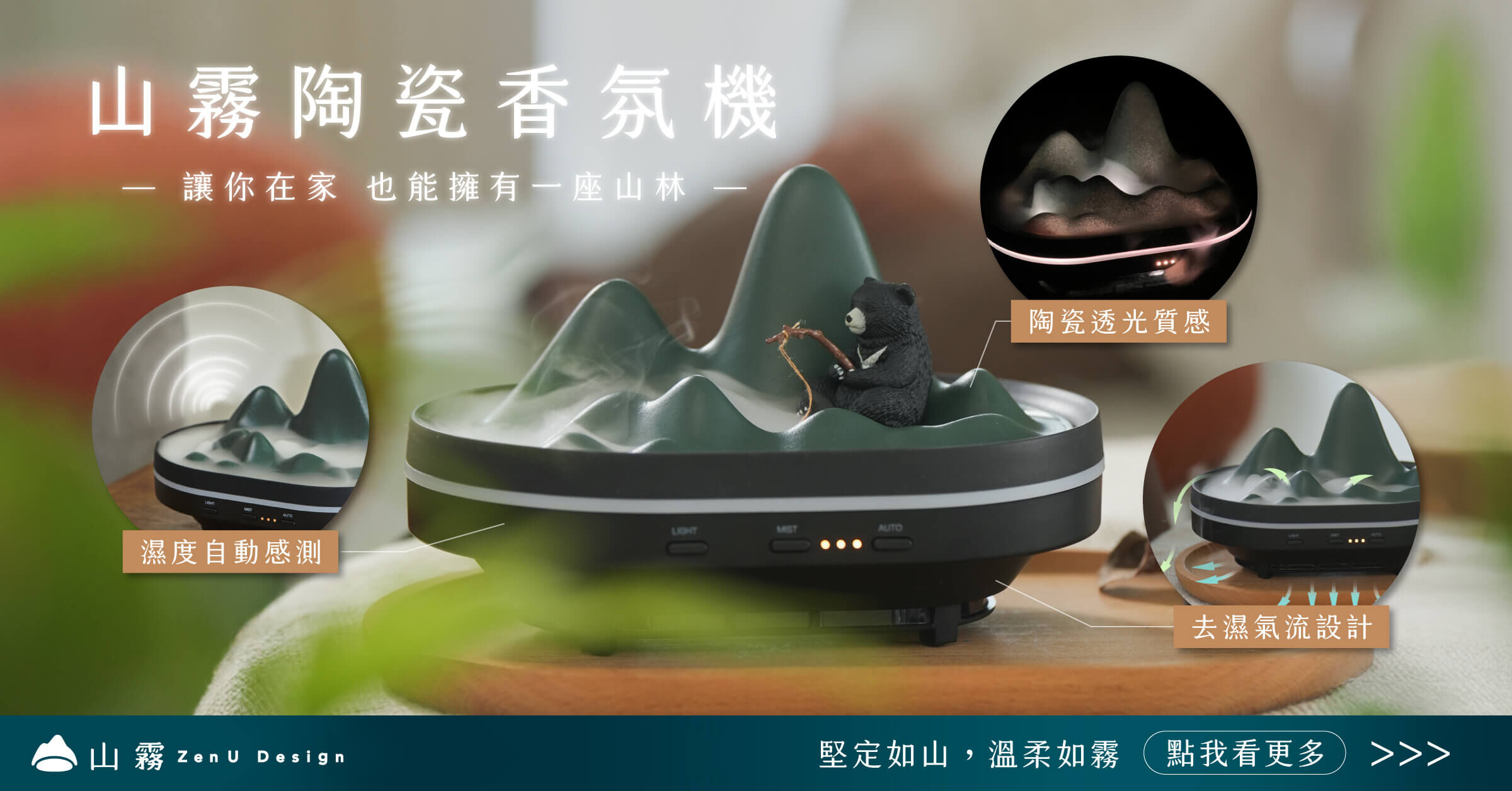 以臺灣著名的景點「阿里山」為參考地形,設計出全球第一台還原山脈雲海效果的擴香裝置。