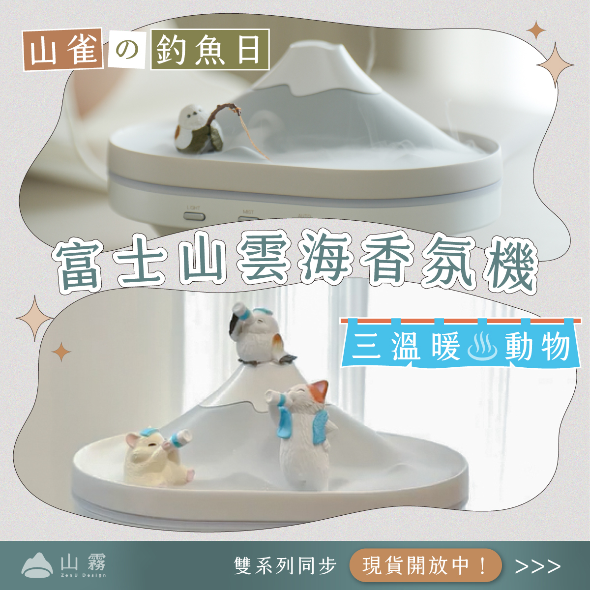 組合內含:富士山雲海香氛機 1 台、複方香氛單支或禮盒 1 款、公仔 1 款